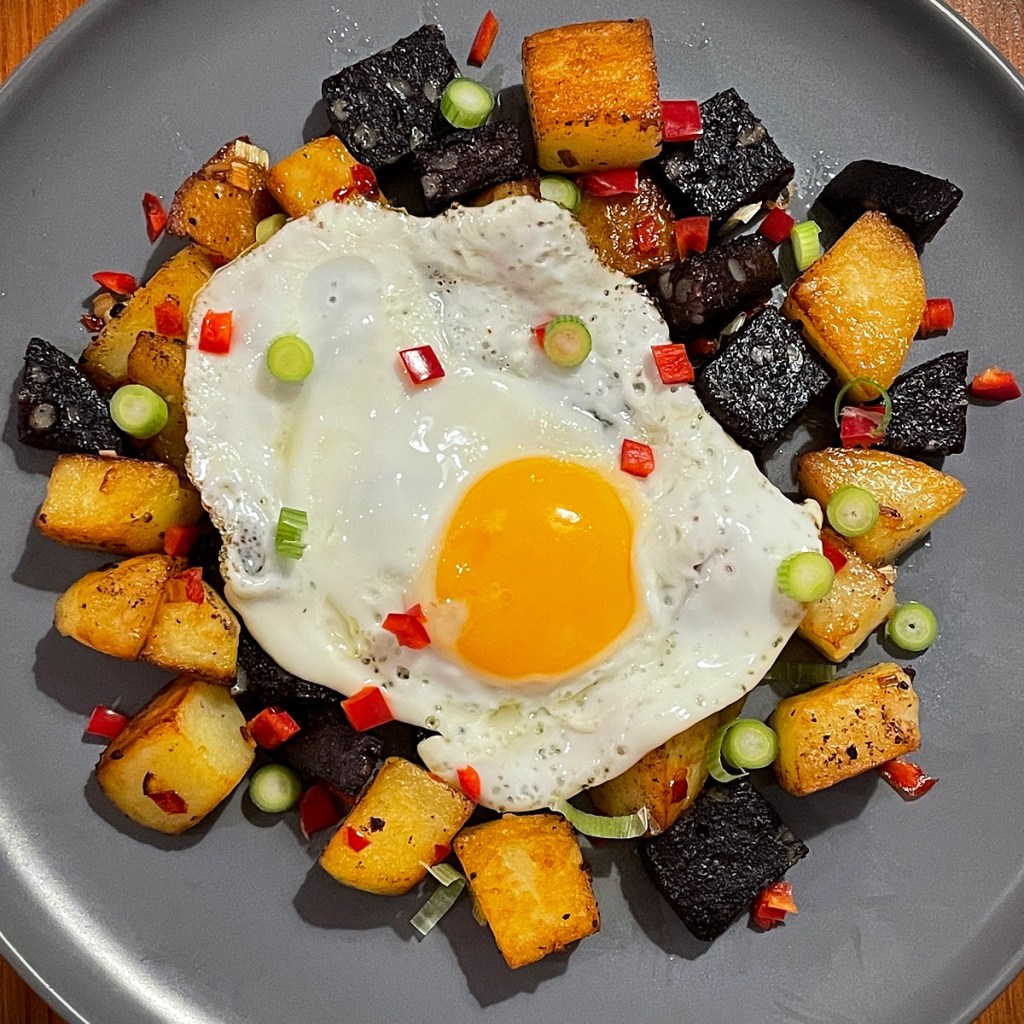 Eighteen years later and my heart sinks when the Nigella Lawson Meal Wheel lands on the Black Pudding Hash. I told some friends what I had to cook next and a couple told me to click again, skip it, no one will know… but that’s against the rules, plus I had tracked down some black pudding and had it sitting in my fridge already by this time.