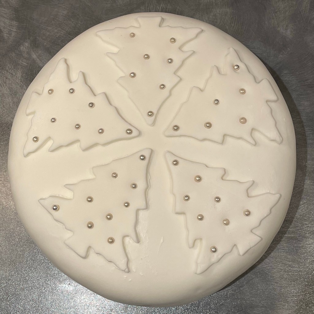 Inspired by the Christmas classic tune Silver Bells, I added some Silver Balls and cut out some Christmas Trees from the remaining icing. It was surprising really there was any leftover icing after the majority had covered the cake or been eaten by yours truly.