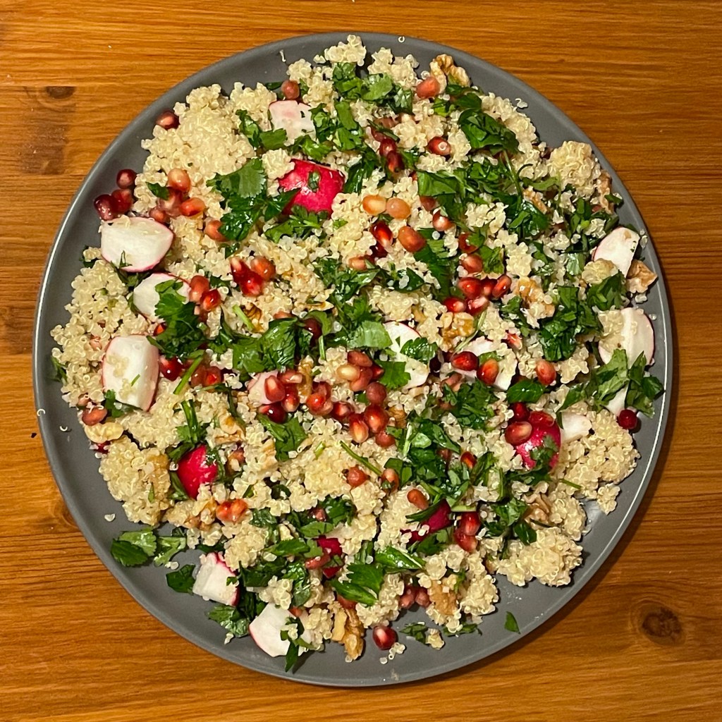 This one took longer than a usual salad would to make as the quinoa needed to be cooked and left for half hour, but the rest of the process (namely add everything else and mix it up) is a straightforward and simple affair.